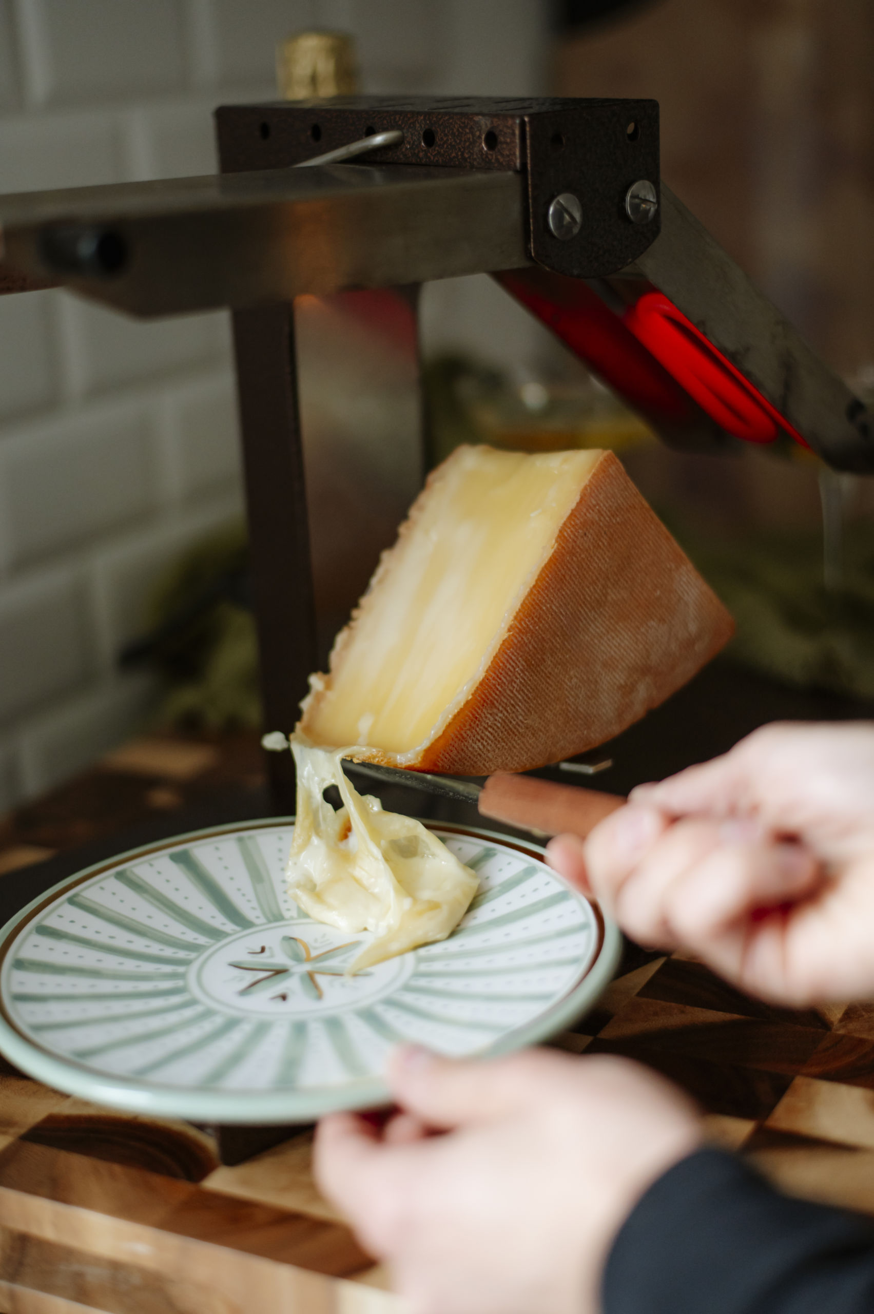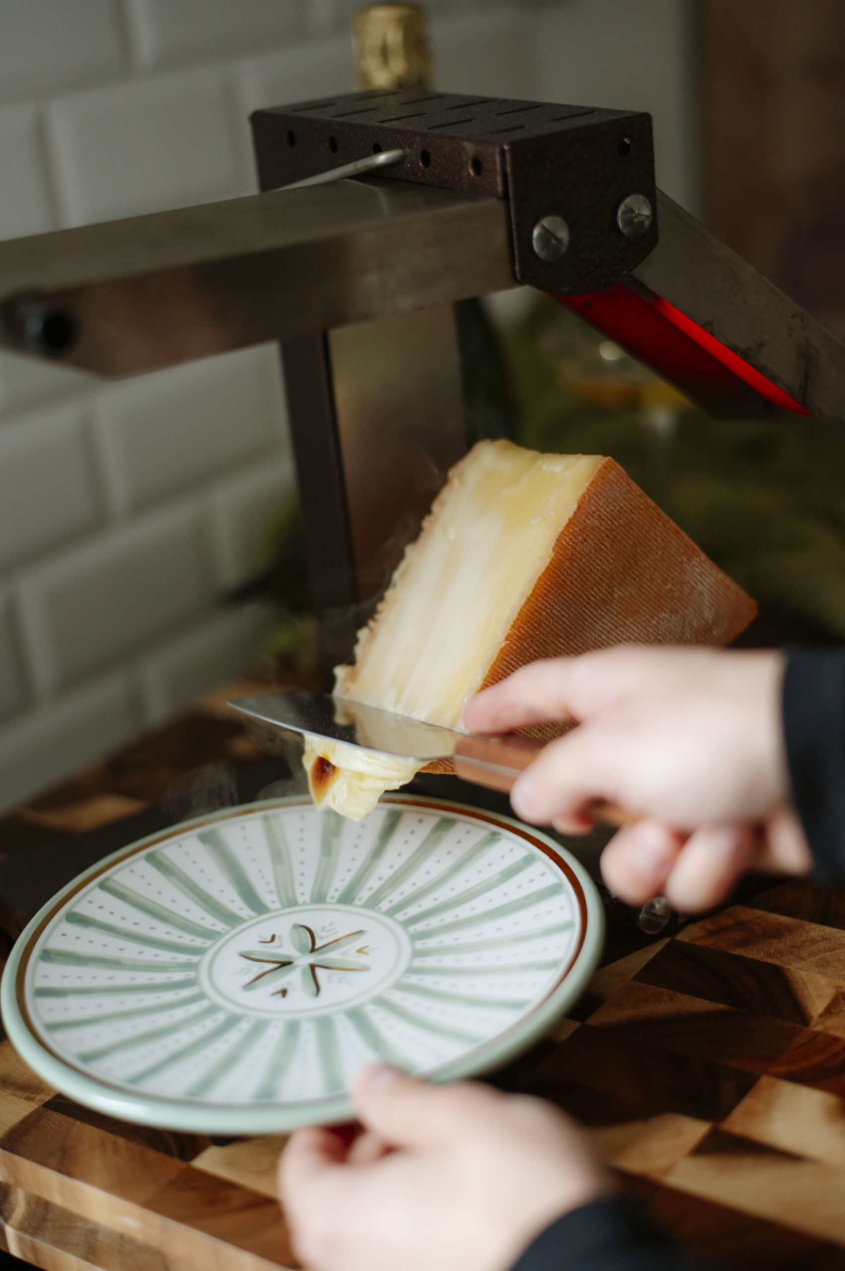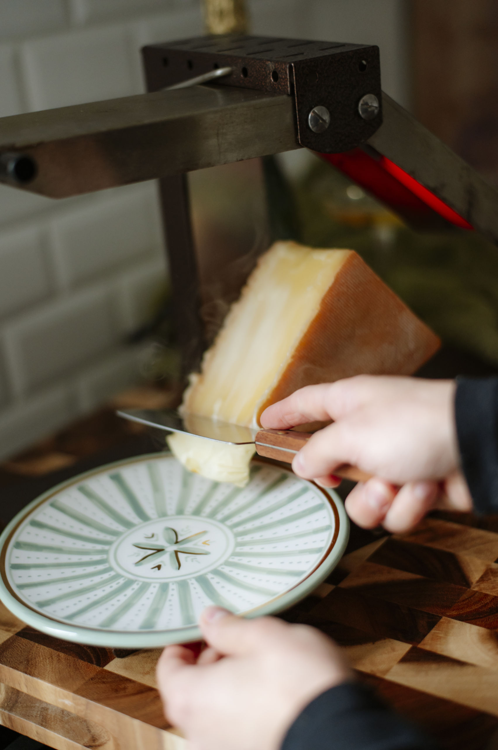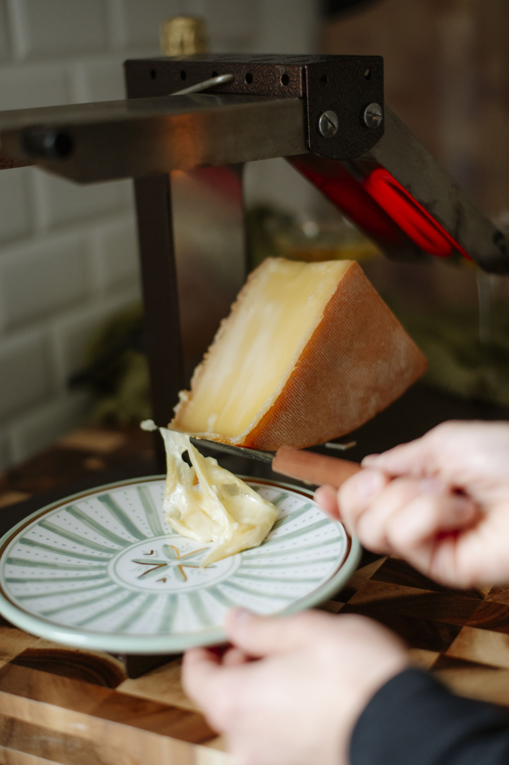 Fromage français à raclette (1/4 de meule) + appareil à raclette mis à disposition pour la soirée.